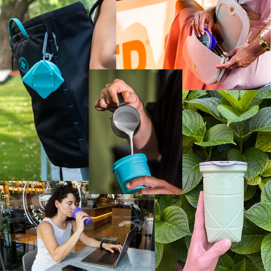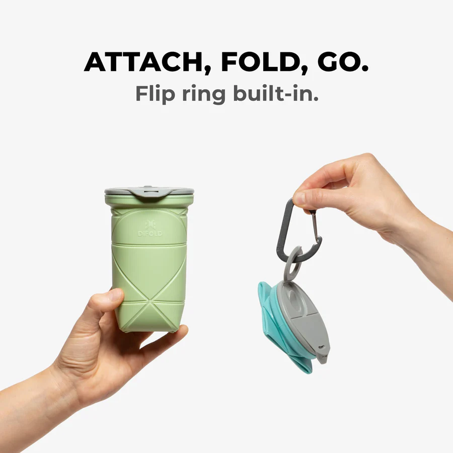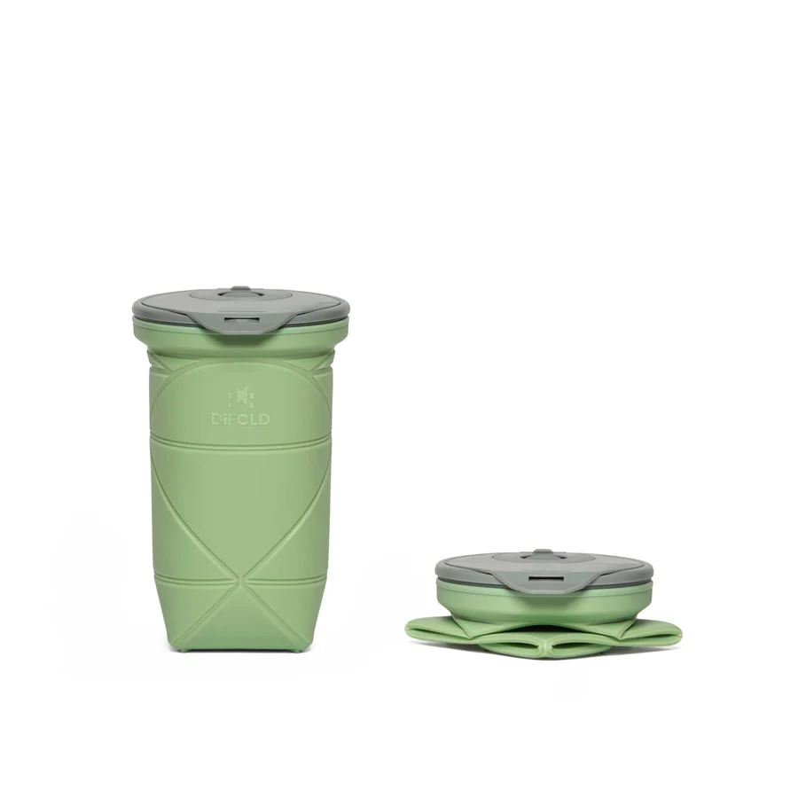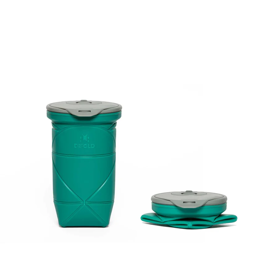 Origami foldable cup with double-isolation leakproof lid. Fits any hot or cold drink. 19 oz/550 ml in your pocket. Sturdy like non-foldable.