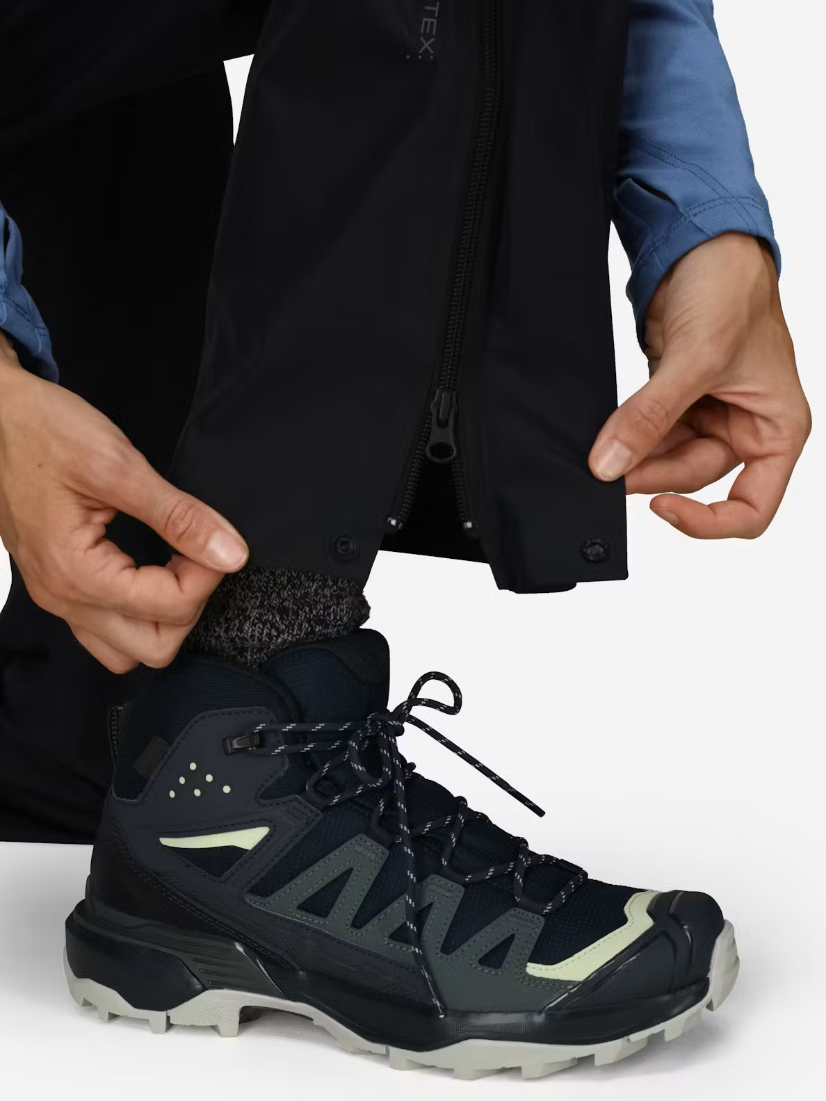 Everything you need, nothing you don't. These ultra-packable trail-ready rain pants are a minimalist backpacker's dream thanks to 2.5L Pertex® Shield Revolve fabric that’s durable, waterproof, windproof, and breathable. Reduced seam construction helps save weight and space in your pack while boosting comfort, mobility, and durability for heavy use in heavy rain. Fully-taped seams and C0 DWR give you leak-proof, water-shedding confidence while 3/4 length side zips make pulling on and off over boots quick, easy, and mud-free. Water-resistant zip hand pockets give you on-the-go storage with articulation in the knees to help you stick to your pace even when you're stuck in a rough storm.