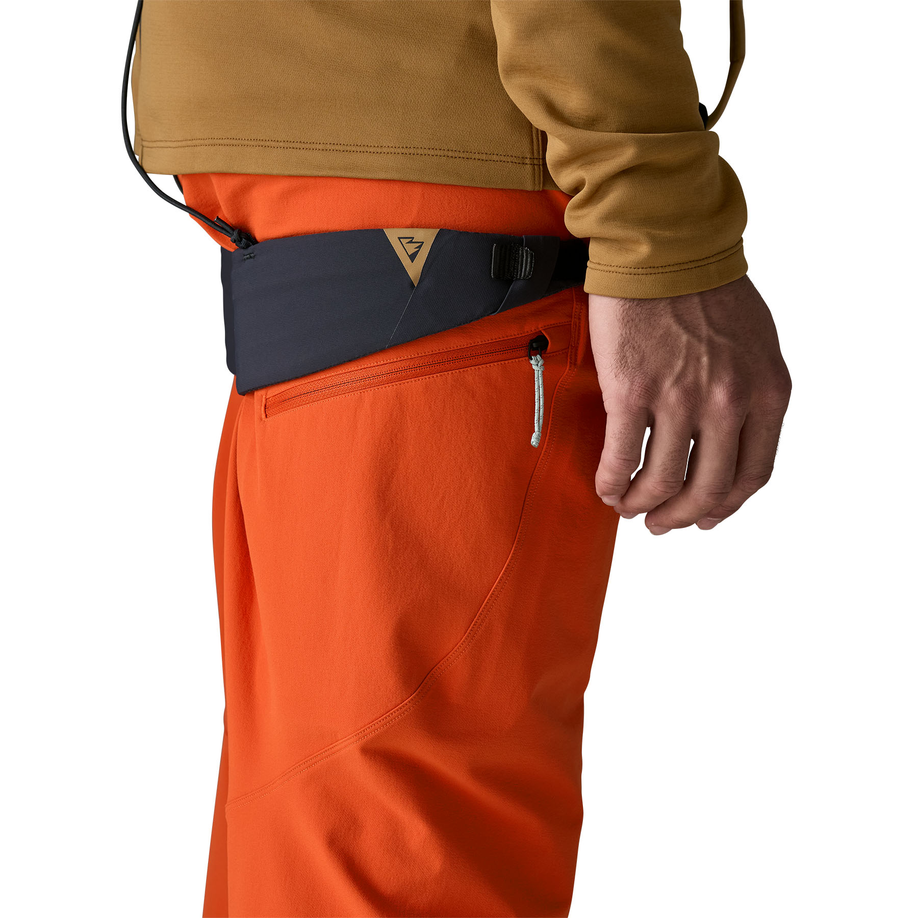Two zippered thigh pockets stay clear of harness leg loops; one zippered back pocket keeps small items secure while on the move - Patterned for Climbing Mobility